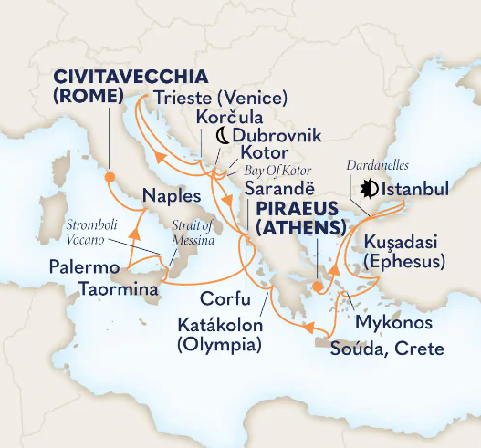 Toutes les escales et les amplitudes horaires indiquées sont données à titre indicatif et sont susceptibles d’être modifiées par les compagnies maritimes à tout moment, avant le départ ou pendant la croisière.