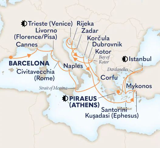 Toutes les escales et les amplitudes horaires indiquées sont données à titre indicatif et sont susceptibles d’être modifiées par les compagnies maritimes à tout moment, avant le départ ou pendant la croisière.