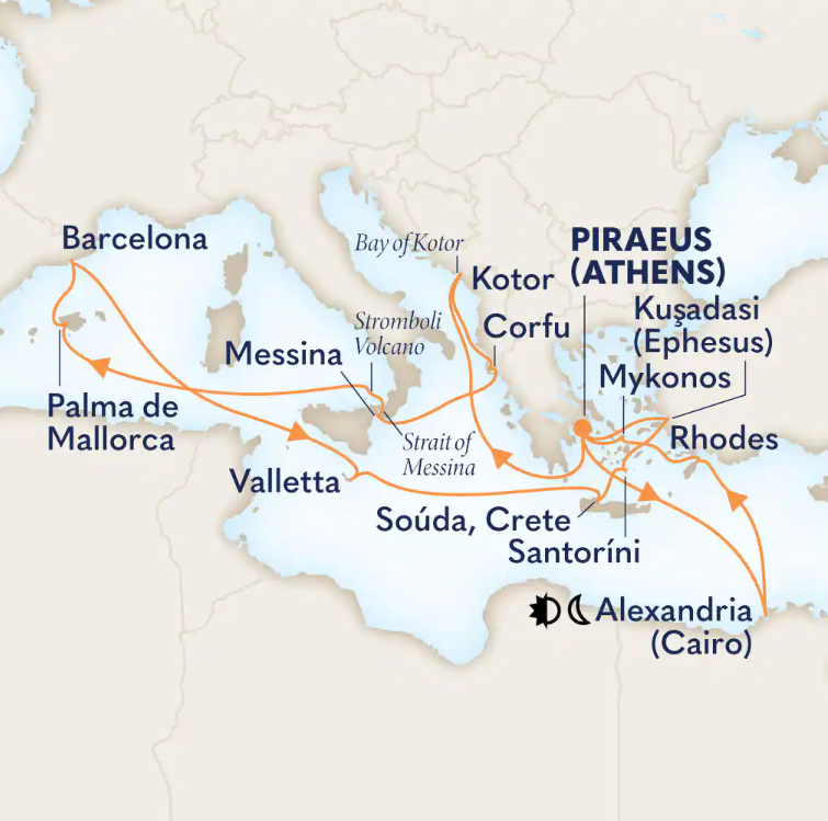 Toutes les escales et les amplitudes horaires indiquées sont données à titre indicatif et sont susceptibles d’être modifiées par les compagnies maritimes à tout moment, avant le départ ou pendant la croisière.