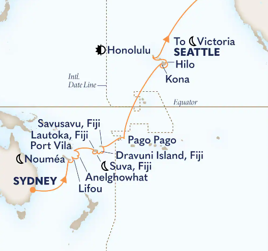Toutes les escales et les amplitudes horaires indiquées sont données à titre indicatif et sont susceptibles d’être modifiées par les compagnies maritimes à tout moment, avant le départ ou pendant la croisière.