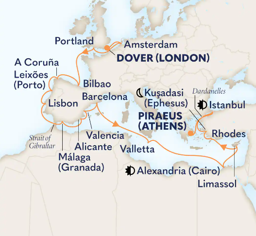 Toutes les escales et les amplitudes horaires indiquées sont données à titre indicatif et sont susceptibles d’être modifiées par les compagnies maritimes à tout moment, avant le départ ou pendant la croisière.