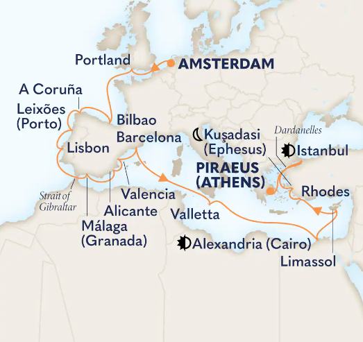 Toutes les escales et les amplitudes horaires indiquées sont données à titre indicatif et sont susceptibles d’être modifiées par les compagnies maritimes à tout moment, avant le départ ou pendant la croisière.