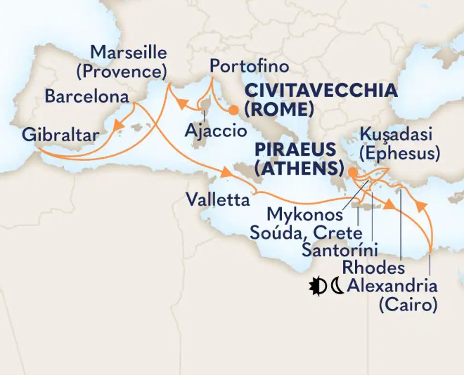 Toutes les escales et les amplitudes horaires indiquées sont données à titre indicatif et sont susceptibles d’être modifiées par les compagnies maritimes à tout moment, avant le départ ou pendant la croisière.