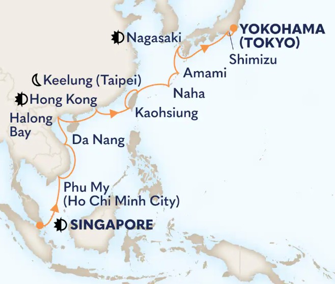 Toutes les escales et les amplitudes horaires indiquées sont données à titre indicatif et sont susceptibles d’être modifiées par les compagnies maritimes à tout moment, avant le départ ou pendant la croisière.