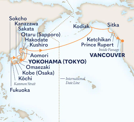Traversée du Pacifique Nord : Japon et Amérique du Nord - W624A