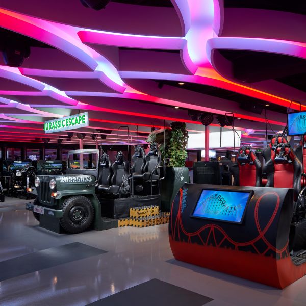 Pour les grands enfants, mais aussi les plus jeunes, la salle de jeux vidéo propose des jeux d’arcade dernier cri : basket, simulateur de montagnes russes…