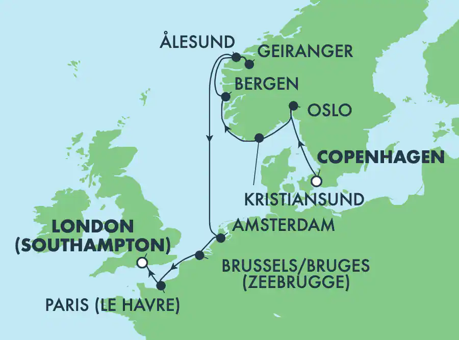 Europe du Nord : Oslo et Bergen, de Copenhague à Southampton
