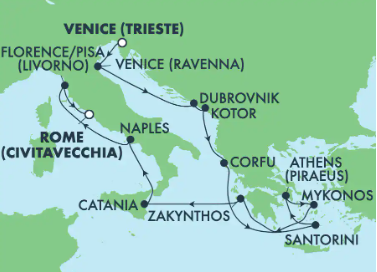 Îles Grecques et Italie : Santorin, Athènes et Croatie, de Venise (Trieste) à Rome (Civitavecchia)