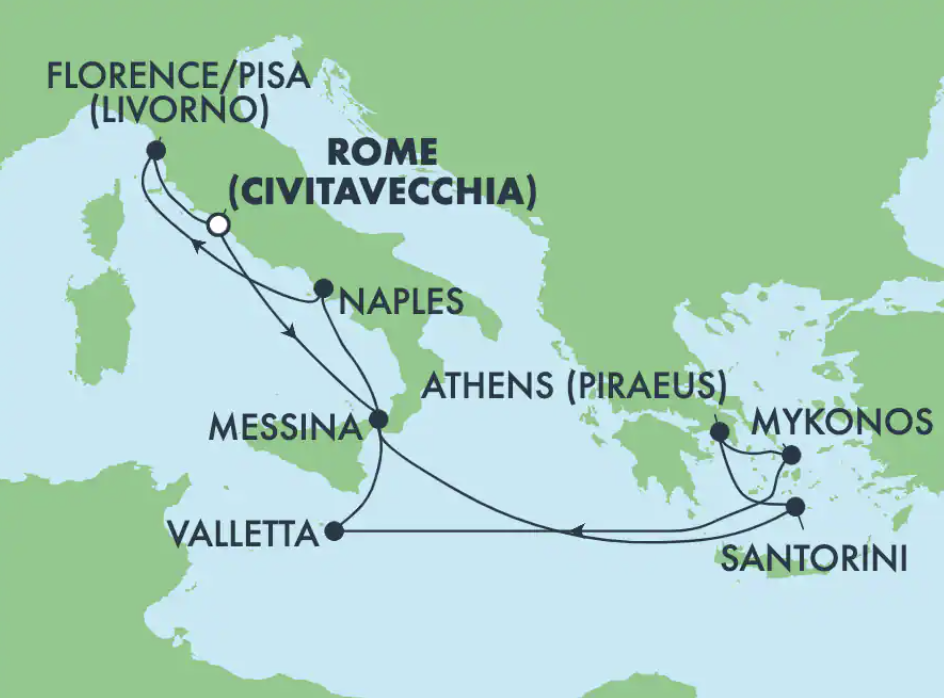 Îles Grecques : Santorin, Athènes et Florence, à partir de Rome (Civitavecchia)