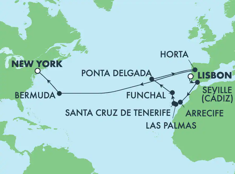 Transatlantique : Espagne, Bermudes et Açores, de Lisbonne à New York