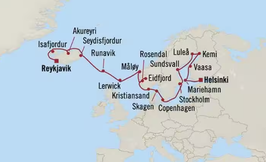 Départ : Helsinki - Finlande / Arrivée : Reykjavik - Islande