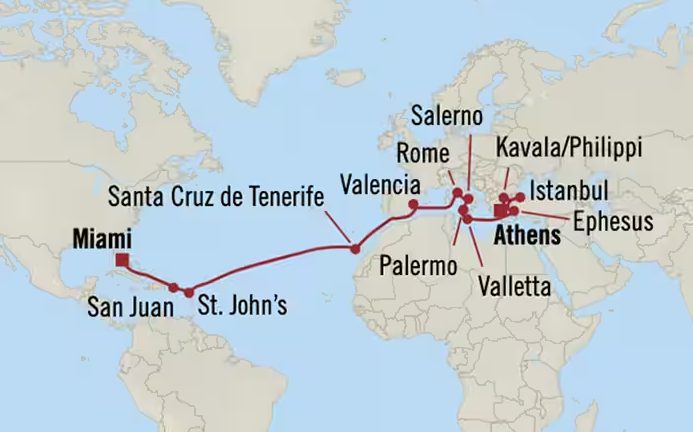 Grèce vers les États-Unis - D'Athènes (Le Pirée) à Miami - VIS241111A