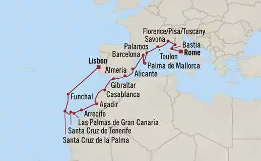 Départ : Rome (Civitavecchia) - Italie / Arrivée : Lisbonne - Portugal