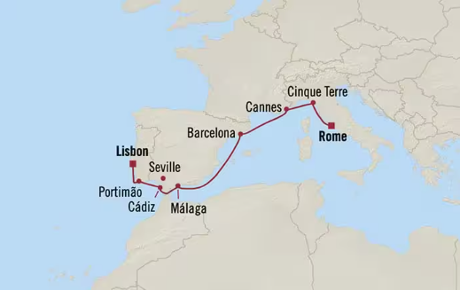 Départ : Lisbonne - Portugal / Arrivée : Rome (Civitavecchia) - Italie