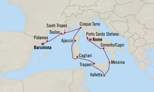 Départ : Barcelone - Espagne / Arrivée : Rome (Civitavecchia) - Italie