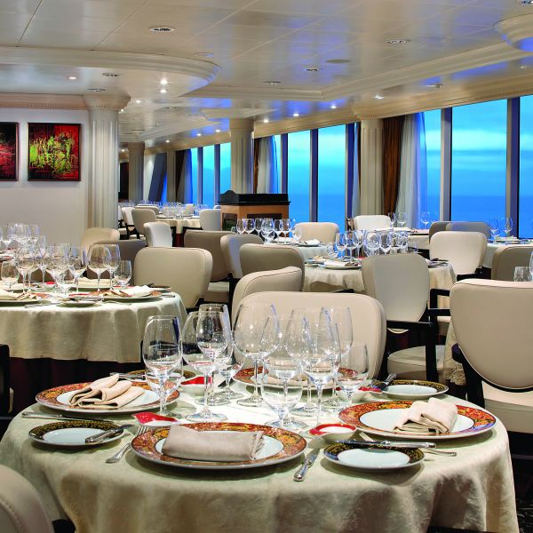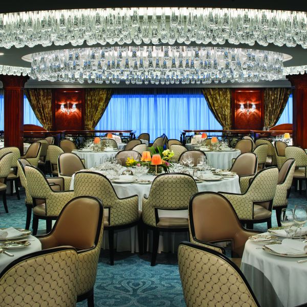 Restaurant principal, à bord du navire, le Grand Dining Room s’inspire des plus grands restaurants étoilés. Décoration élégante, fauteuils confortables, assiettes en porcelaine, verres en cristal de Riedel, couverts en argent. Le personnel est ouvert et à l’écoute des demandes des passagers.