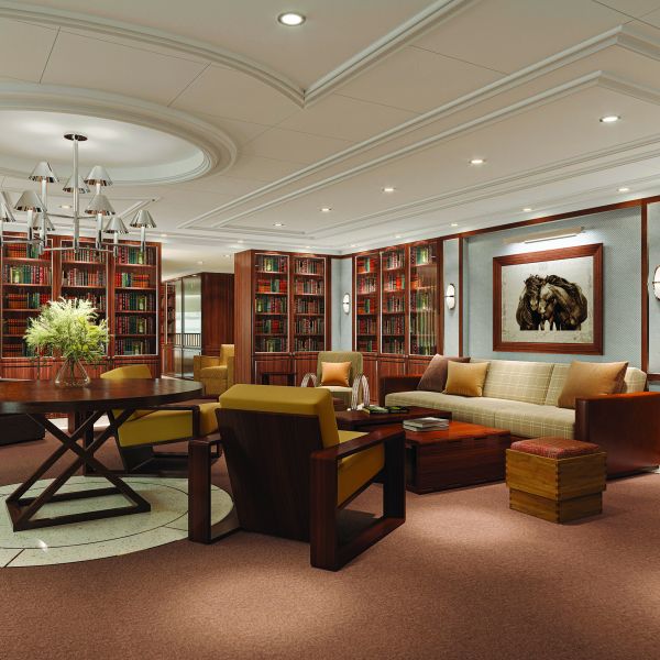 Plus de 2 000 livres et journaux sont disponibles dans cette bibliothèque au style anglais. Guides touristiques pour en apprendre plus sur la prochaine escale, romans, thrillers, ou œuvres de la littérature classique, il y a de quoi se détendre, s’évader et se cultiver.
