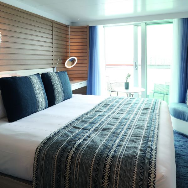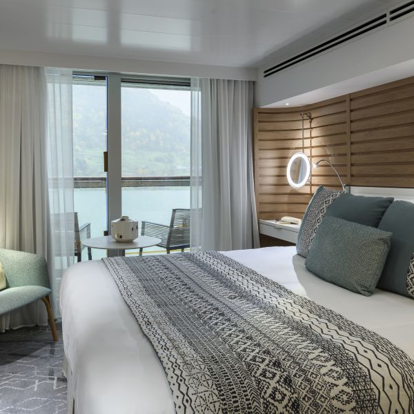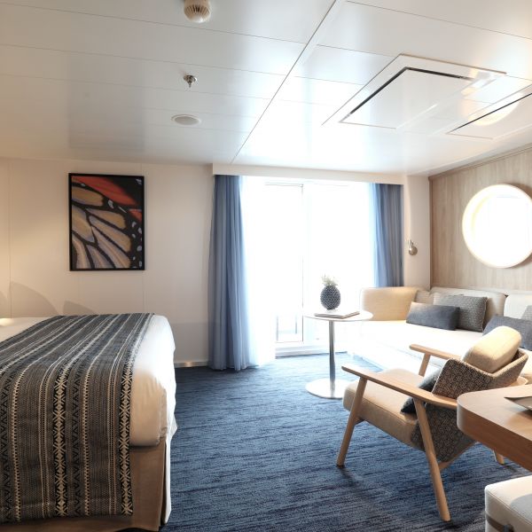 Les Suites Deluxe ont été conçues pour apporter un confort absolu aux passagers. Bénéficiant toutes de balcons ou terrasses privés, elles sont décorées avec soin et contribuent à l’atmosphère à la fois feutrée et chaleureuse du navire.