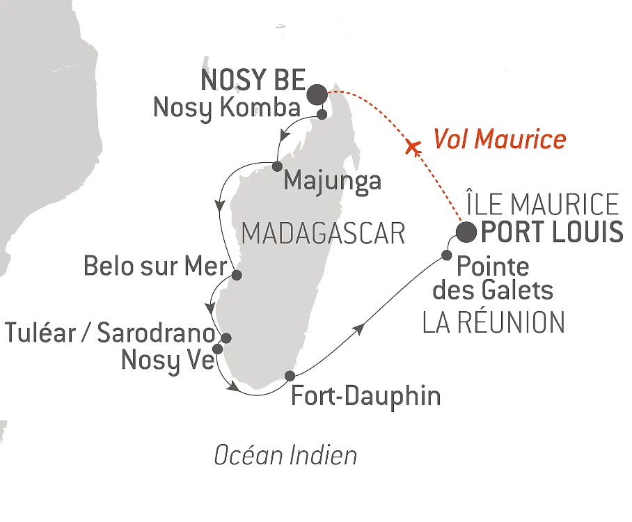 Des modifications pouvant intervenir entre le moment de l’inscription et la date de départ, nous recommandons aux passagers de vérifier les formalités de police et recommandations sanitaires auprès de leur agence de voyages ou en consultant le site de France Diplomatie.