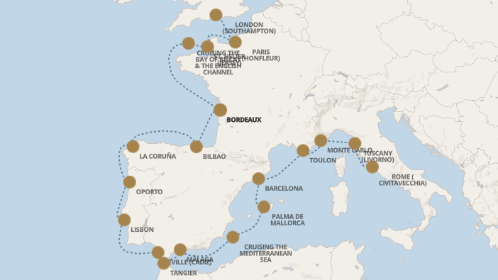 • Toutes boissons incluses : vins, champagnes sélectionnés, bières, alcools, cocktails, boissons sans alcool, eaux minérales, cafés et thés servis dans le navire à toute heure