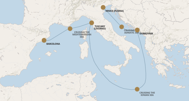 Des suites somptueuses, des espaces publics ultra-luxueux, des navires spacieux viennent compléter les prestations. L’agencement des navires évite de longs parcours entre les espaces publics et les