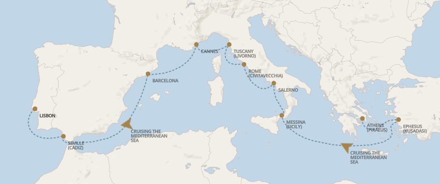 La Méditerranée, d'Athènes (Le Pirée) à Lisbonne