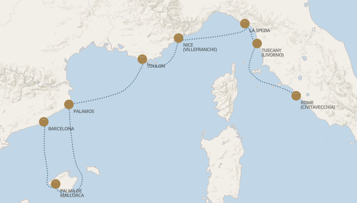 La Méditerranée, de Rome (Civitavecchia) à Barcelone