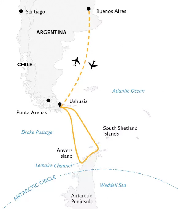 • Les vols aller/retour entre Buenos Aires et Ushuaïa