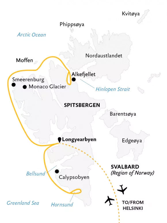 • Le vol charter aller/retour entre Longyearbyen et Helsinki