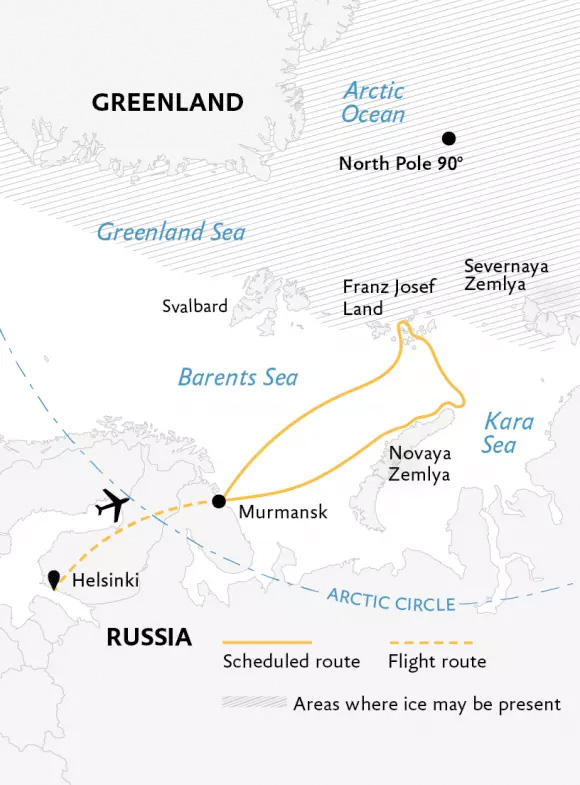 Traverser des contrées inattendues fait partie intégrante de l’héritage et du caractère excitant des expéditions. Dans ces régions extrêmement isolées, le personnel de l’expédition doit vérifier chaque détail concernant la mer, la glace, la météo et l’itinéraire. Une certaine souplesse est donc nécessaire. Les itinéraires sont sujets à modification et adaptation en fonction des conditions climatiques. Les lieux visités peuvent être modifiés par d’autres tout aussi intéressants. Profiter de l’inattendu fait partie de l’aventure.