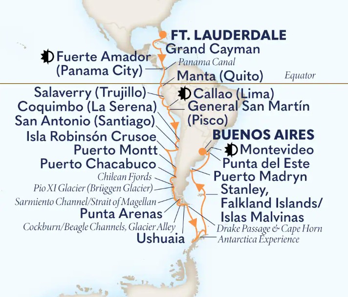 Toutes les escales et les amplitudes horaires indiquées sont données à titre indicatif et sont susceptibles d’être modifiées par les compagnies maritimes à tout moment, avant le départ ou pendant la croisière.