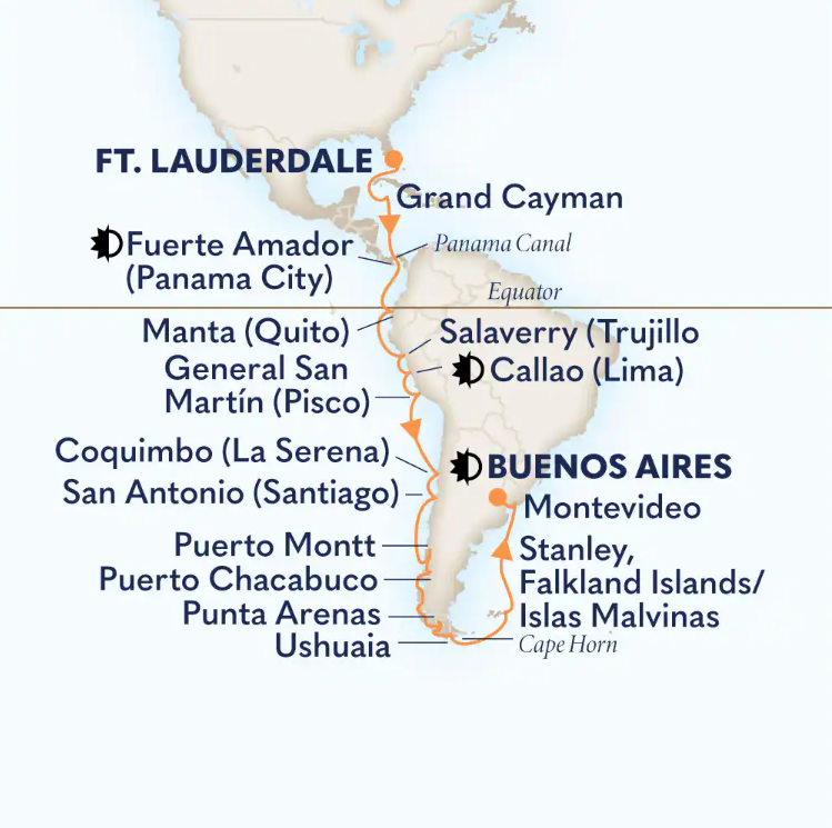 Toutes les escales et les amplitudes horaires indiquées sont données à titre indicatif et sont susceptibles d’être modifiées par les compagnies maritimes à tout moment, avant le départ ou pendant la croisière.