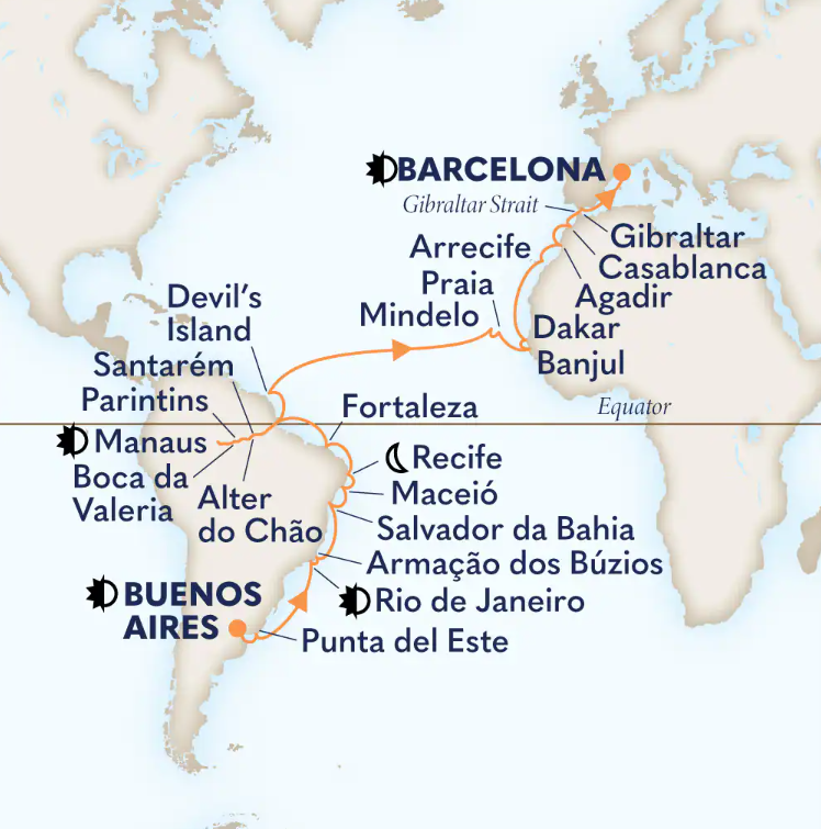 Toutes les escales et les amplitudes horaires indiquées sont données à titre indicatif et sont susceptibles d’être modifiées par les compagnies maritimes à tout moment, avant le départ ou pendant la croisière.
