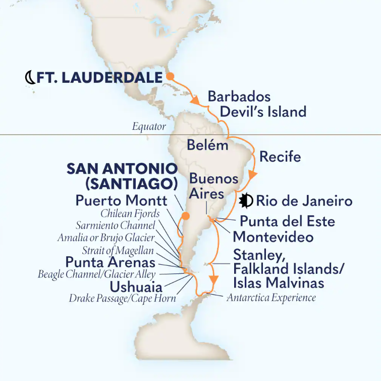 Toutes les escales et les amplitudes horaires indiquées sont données à titre indicatif et sont susceptibles d’être modifiées par les compagnies maritimes à tout moment, avant le départ ou pendant la croisière.
