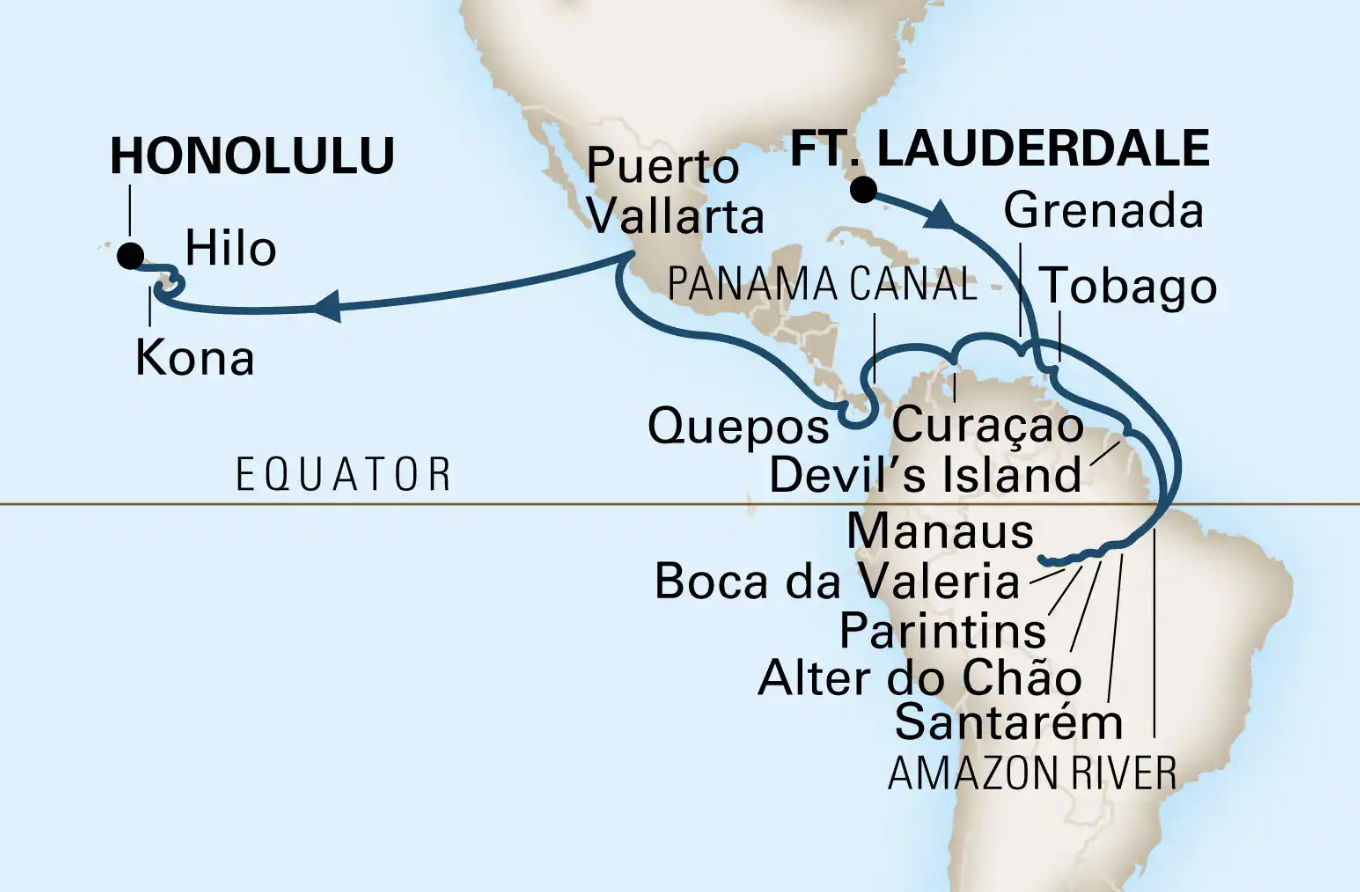 Grand Voyage : Caraïbes, Amazonie et Hawaï, de Fort Lauderdale à Oahu