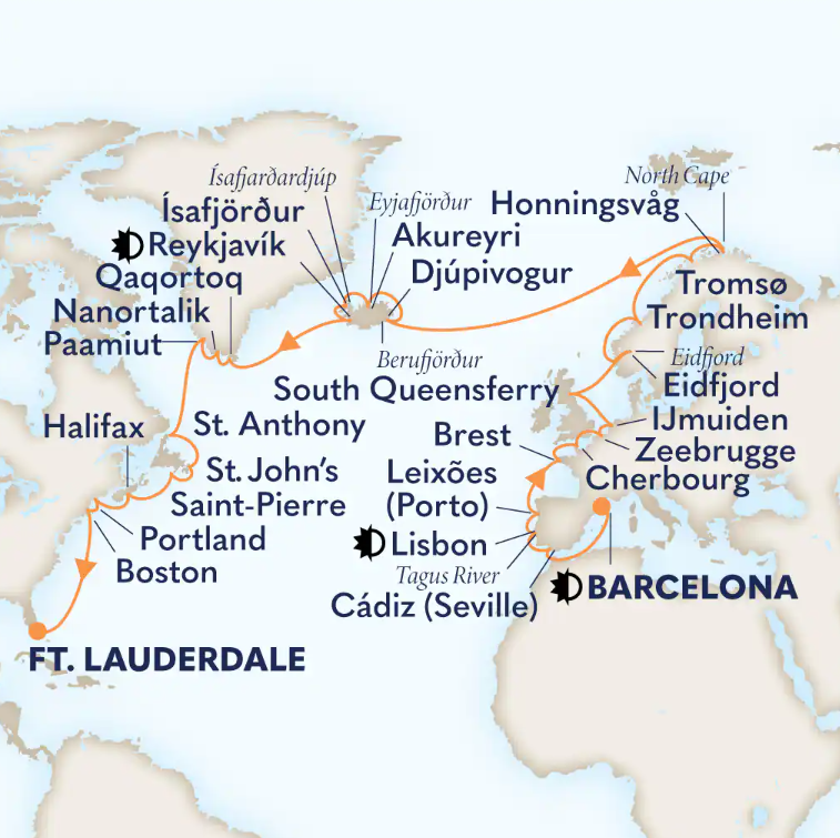 Toutes les escales et les amplitudes horaires indiquées sont données à titre indicatif et sont susceptibles d’être modifiées par les compagnies maritimes à tout moment, avant le départ ou pendant la croisière.