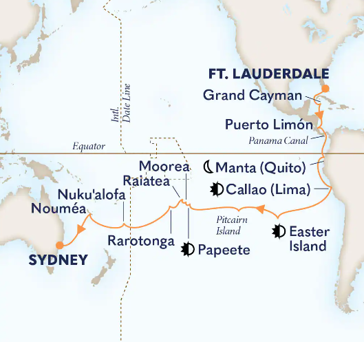 Toutes les escales et les amplitudes horaires indiquées sont données à titre indicatif et sont susceptibles d’être modifiées par les compagnies maritimes à tout moment, avant le départ ou pendant la croisière.