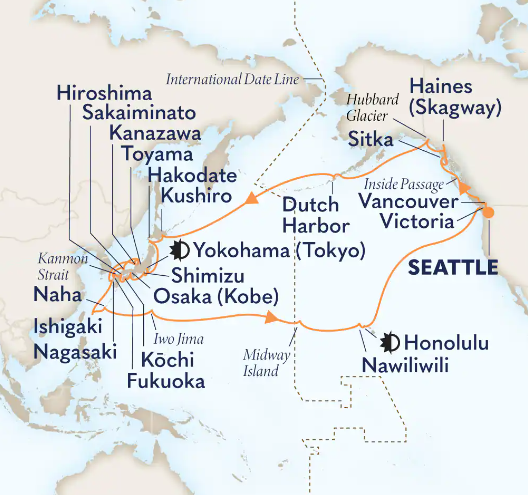 Toutes les escales et les amplitudes horaires indiquées sont données à titre indicatif et sont susceptibles d’être modifiées par les compagnies maritimes à tout moment, avant le départ ou pendant la croisière.