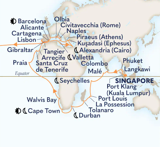 Toutes les escales et les amplitudes horaires indiquées sont données à titre indicatif et sont susceptibles d’être modifiées par les compagnies maritimes à tout moment, avant le départ ou pendant la croisière.