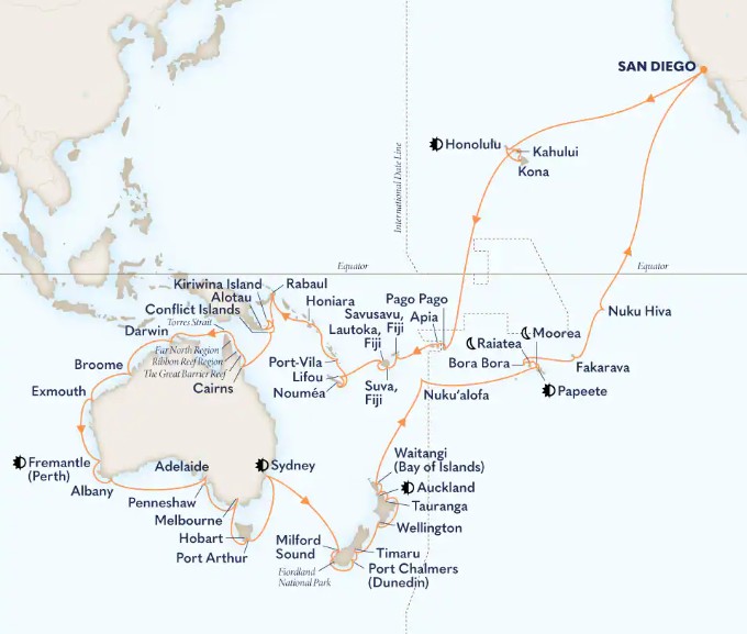 Toutes les escales et les amplitudes horaires indiquées sont données à titre indicatif et sont susceptibles d’être modifiées par les compagnies maritimes à tout moment, avant le départ ou pendant la croisière.
