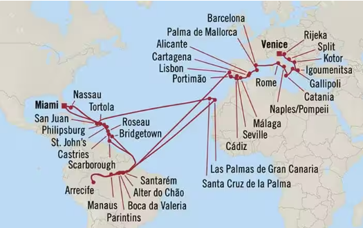 Départ : Venise - Italie / Arrivée : Miami - États-Unis