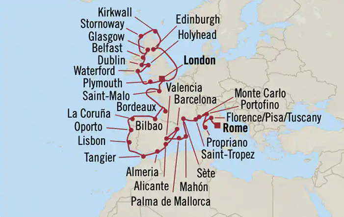 Grand Voyage : Europe, de Southampton à Rome (Civitavecchia)