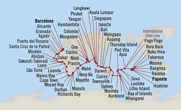 • Service de navette OFFERT du navire au centre-ville dans de nombreux ports d’escale – pour une valeur allant jusqu’à U$50 par jour et par passager