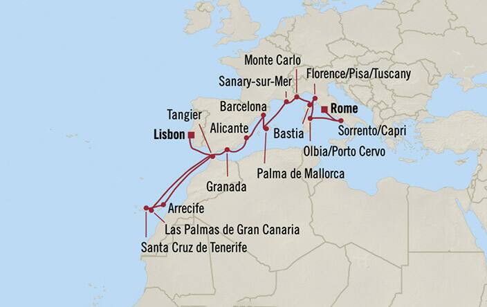 Îles de la Méditerranée, de Rome (Civitavecchia) à Lisbonne