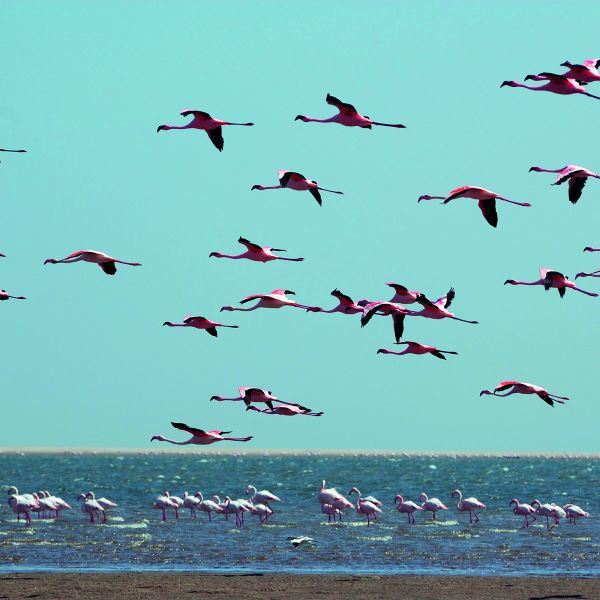 Ville portuaire ouvrant sur l’océan Atlantique, Walvis Bay, Baie des Baleines en Afrikaans, est une destination prisée des visiteurs dans la région. La faune est exceptionnelle, avec des flamants roses, des pélicans, des baleines, des dauphins, des otaries… Ces espèces endémiques sont pour la plupart observables à partir de mini-croisières à bord de catamarans.