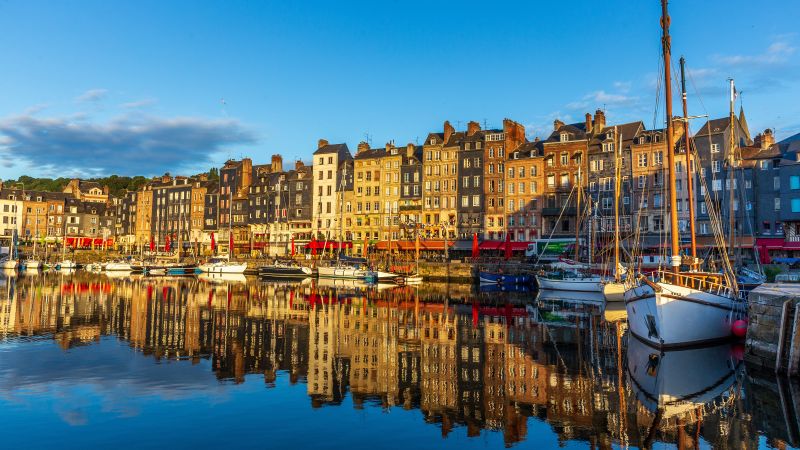 Honfleur est une charmante petite ville située sur l’estuaire de la Seine, en face de la ville du Havre. Le spectaculaire Pont de Normandie enjambe l’estuaire et relie les deux rives. Au centre d’Honfleur, le Vieux Bassin est une véritable carte postale et un incontournable de visite, avec le cliquetis des navires amarrés, et les magnifiques demeures qui le bordent, et qui ont inspirés des peintres les plus célèbres, comme Claude Monet.