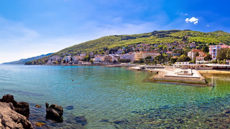 Située au fond du golfe de Kvarner, Opatija s'étage sur un versant à la végétation luxuriante plongeant dans la mer. Ses eaux bleues et ses villas ou manoirs construits à la fin du 19ème siècle ont des allures de Côte d'Azur. Elle-même porte le surnom de « Nice de l'Adriatique » : tout un programme !
