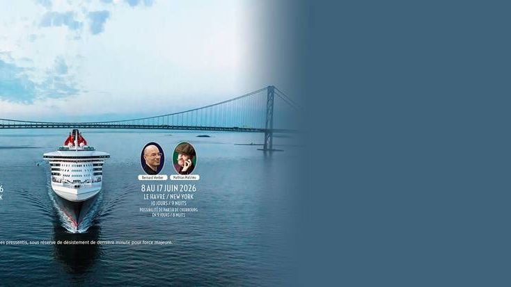 Retrouvez de prestigieux auteurs de à bord de Queen Mary 2, à l’occasion de traversées transatlantiques francophones exceptionnelles au départ du Havre (1er et 8 juin 2026) et de Cherbourg (9 juin 2026).