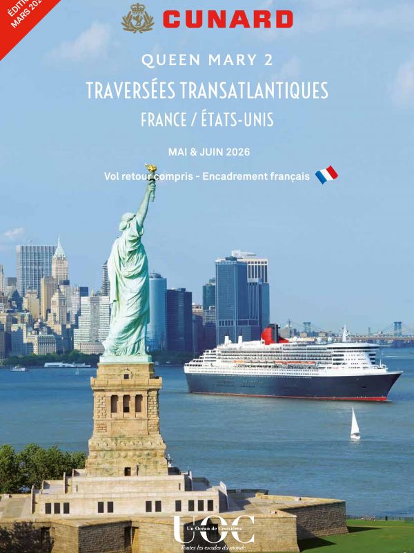 Retrouvez de prestigieux auteurs à bord de Queen Mary 2, à l’occasion de traversées transatlantiques francophones exceptionnelles au départ du Havre (1er et 8 juin 2026) et de Cherbourg (9 juin 2026).